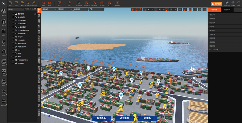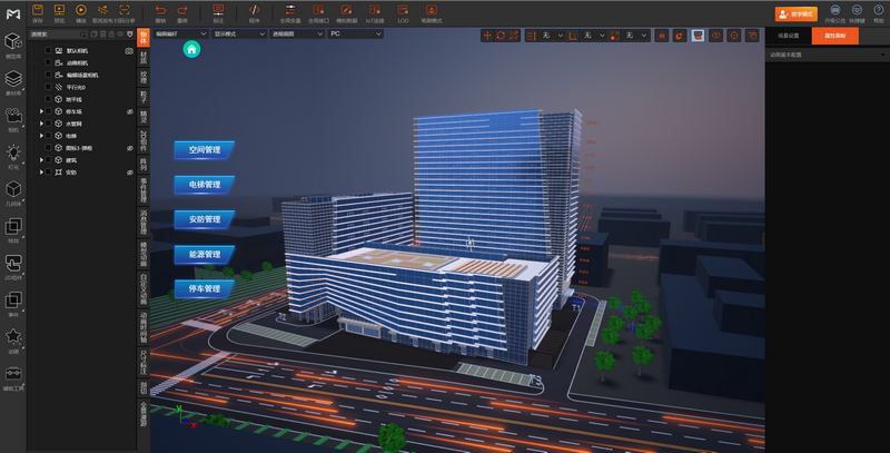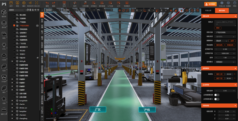 支持对模型、材质、光照等元素的专业设定和编辑,同时预置常用素材和组件库,结合平台资源库可快速完成复杂场景的设计制作。